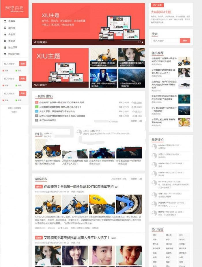 WordPress博客主题 阿里百秀XIU V7.1主题破解版_源码下载